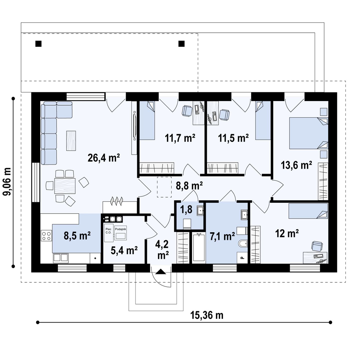 • Pomieszczenie Gospodarcze: 5,4 m²