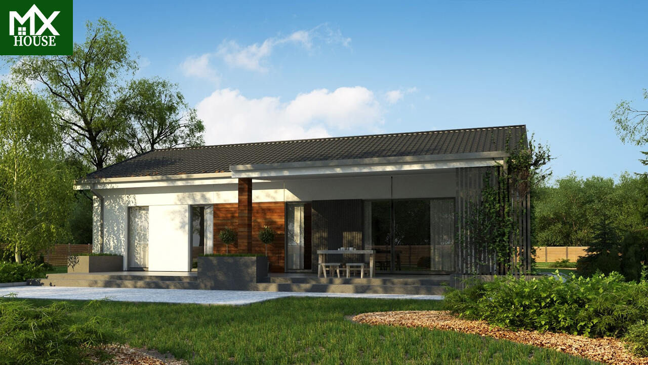 Od 71M2Parterowy dom z 4 sypialniami z dachem